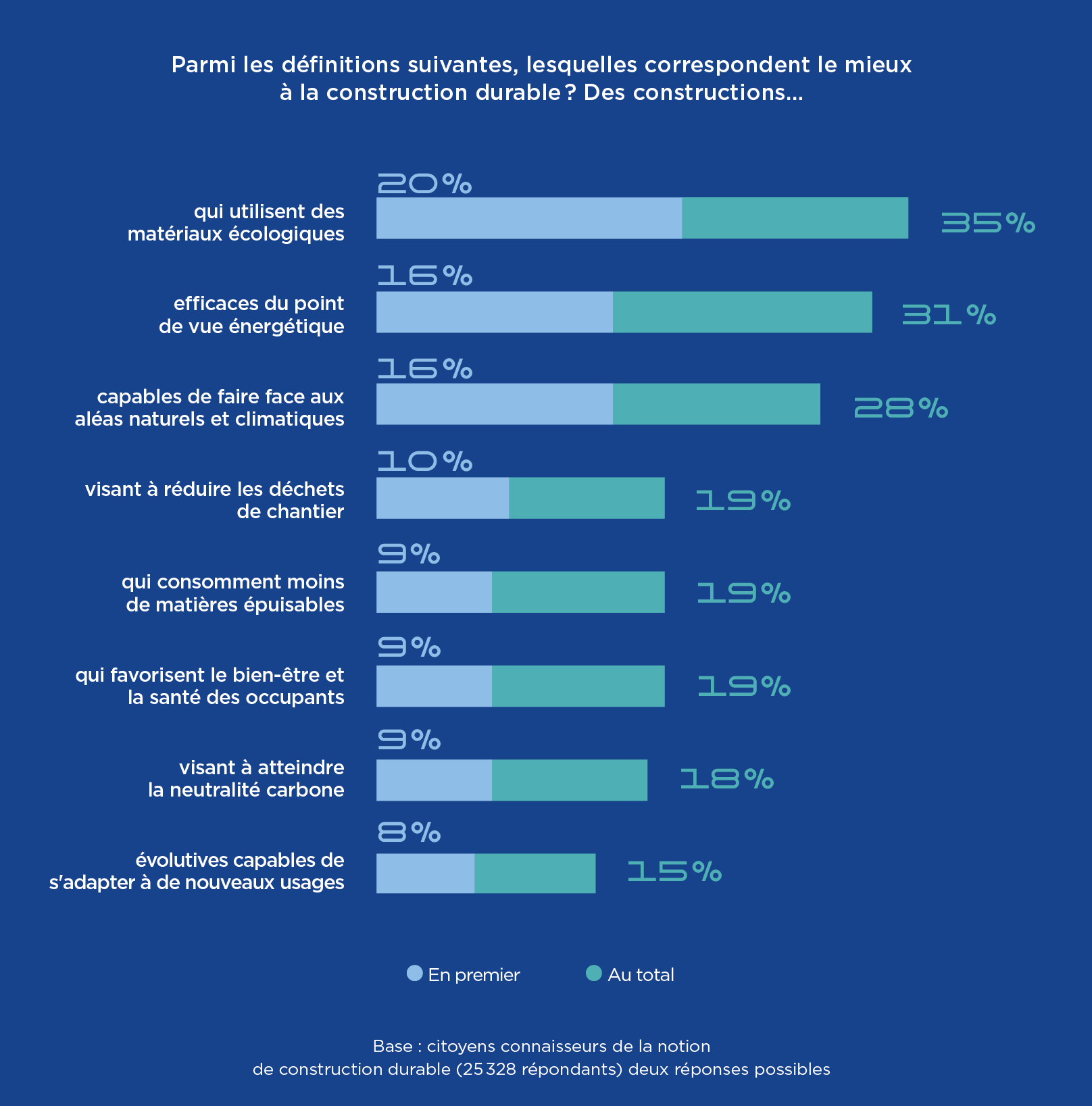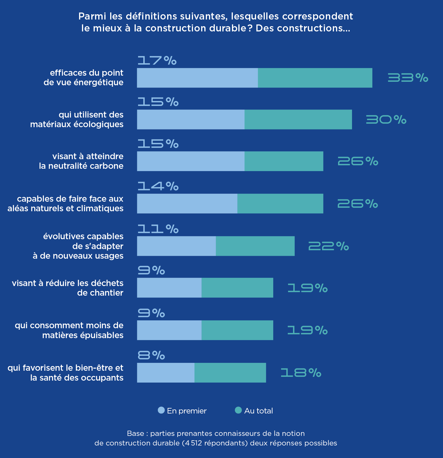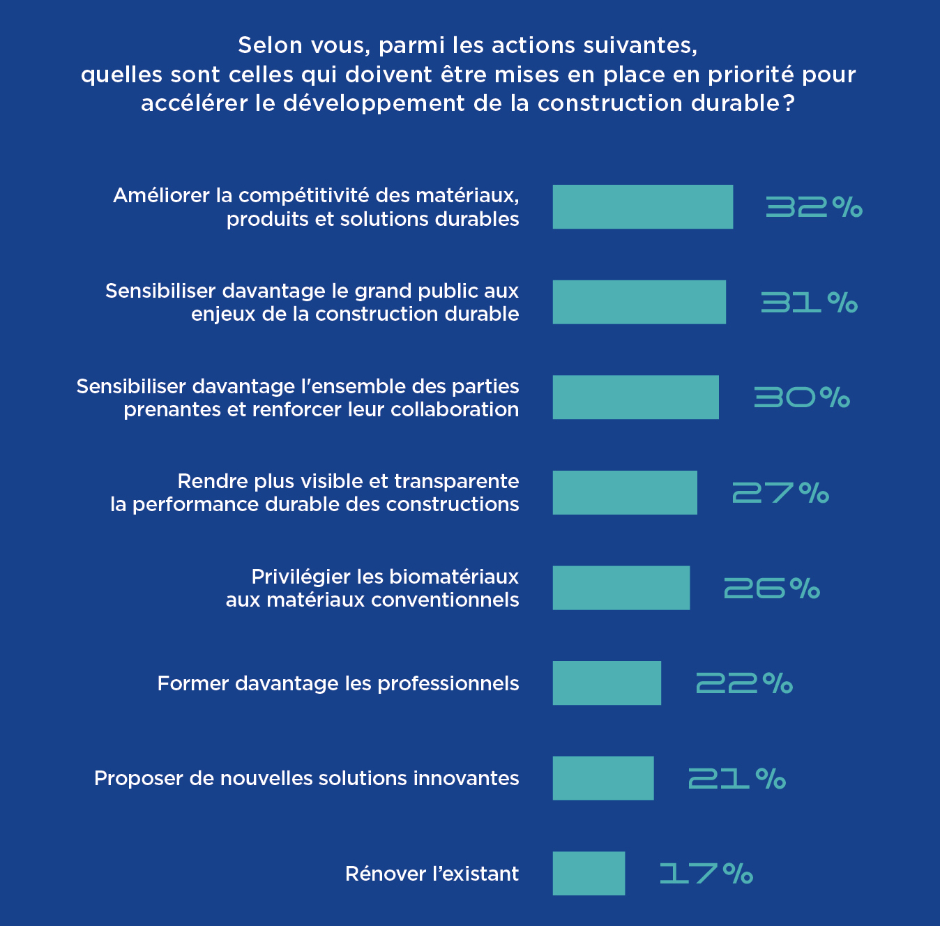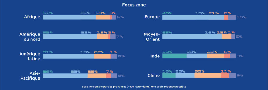 Si ces orientations font globalement consensus, des spécificités régionales émergent néanmoins : la rénovation est davantage mise en avant en Europe (25 %), tandis que l’Asie-Pacifique se distingue par un intérêt plus marqué pour les biomatériaux (32 %).