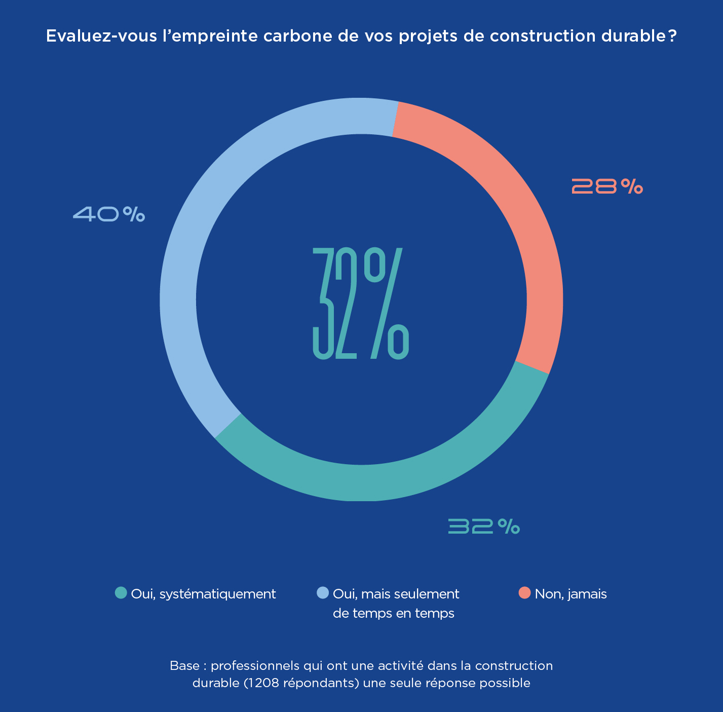 Le Baromètre de la construction durable 2026 a été réalisé entre le 16 octobre et le 14 novembre 2025, auprès d’un échantillon de 4 800 répondants issus de 30 pays : Afrique du Sud, Allemagne, Arabie Saoudite, Argentine, Brésil, Canada, Chine, Colombie, Égypte, Émirats Arabes Unis, Espagne, États-Unis, Finlande, France, Inde, Indonésie, Italie, Kenya (1), Malaisie (1), Maroc, Mexique, Norvège, Pologne, Portugal, République tchèque, Roumanie (1), Royaume-Uni, Suisse, Turquie, Vietnam. Ce panel a répondu via un questionnaire auto-administré en ligne et se réparti comme suit :