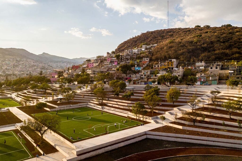 Au Mexique, ils interviennent dans des villes confrontées à une situation paradoxale : le manque d’accès à l’eau potable coexiste avec des inondations fréquentes. Pour y répondre, ils mettent en place des systèmes de gestion de l’eau légers et décentralisés, intégrés aux espaces publics et associés à des équipements urbains.