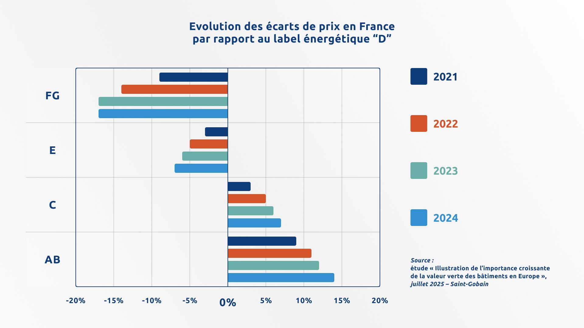 Le mouvement est progressif, mais profond. Il ne s’agit pas d’un engouement passager pour des bâtiments « verts », ni d’un effet d’image. Les données de marché montrent une réalité plus structurante : la performance énergétique influence désormais directement les prix, la liquidité des actifs et la perception du risque immobilier.